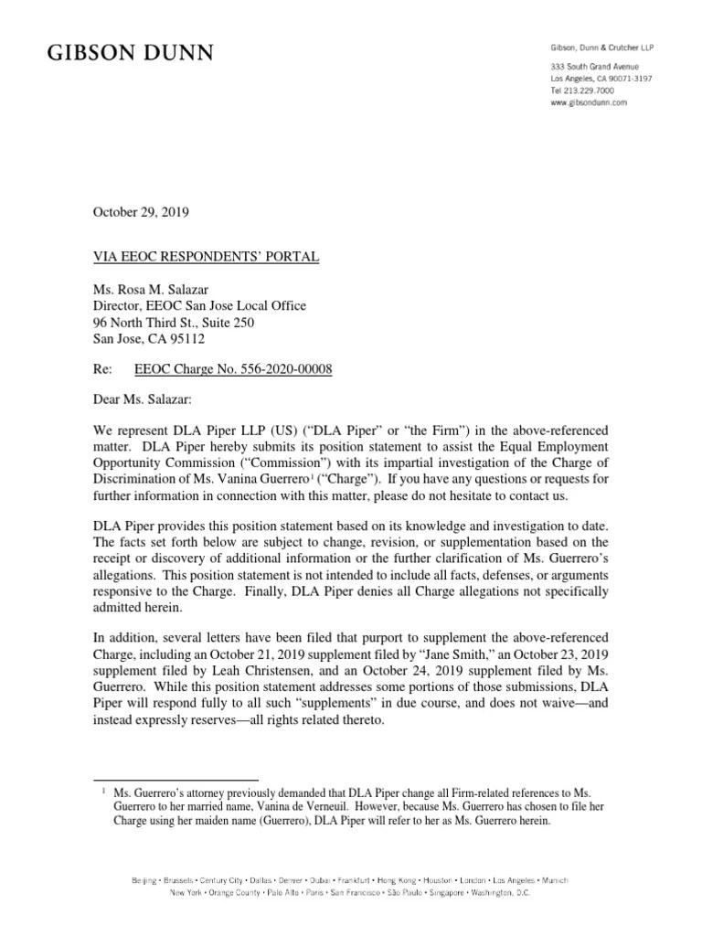 DLA Piper EEOC Position Statement With Exhibits PDF Sexual
